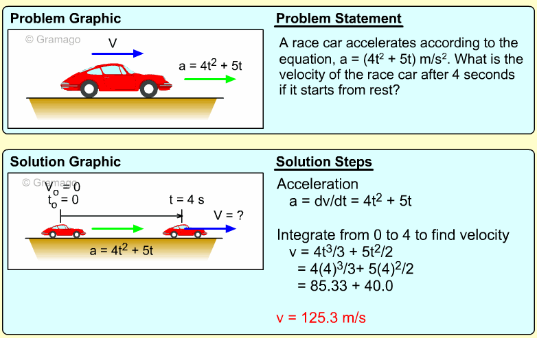 Notice, the integration was done with time, t, and not 5 seconds. Since the velocity at 5 seconds is not requested, only the general velocity function is determined.