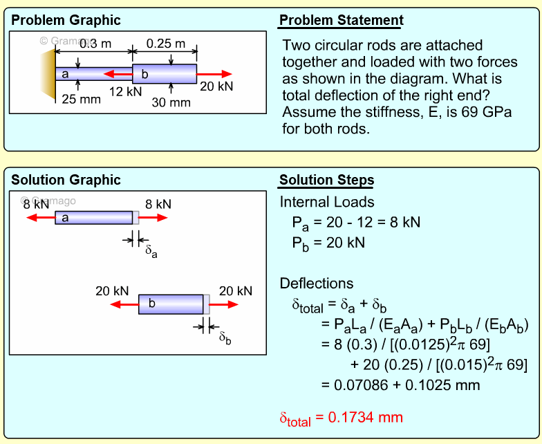 Next, it will be easier to analyze the deflection if the foundation is split into two sections, 1 and 2. The deflection of the top section can be determined by
