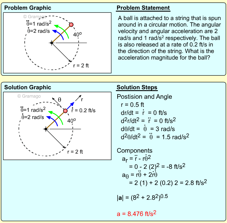 a = (ar2 + aθ2)0.5 = ( -201.12 + 3842)0.5 =