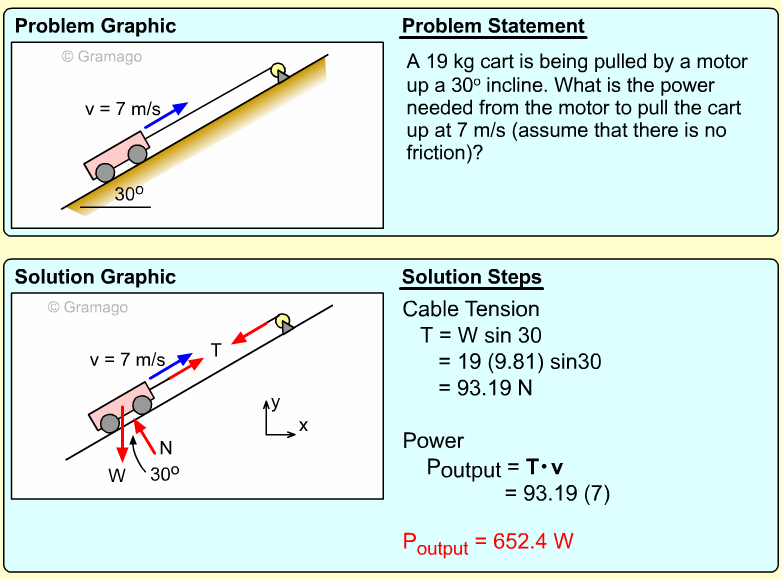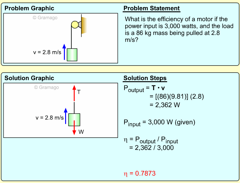 Thus the power output needed from the motor is,