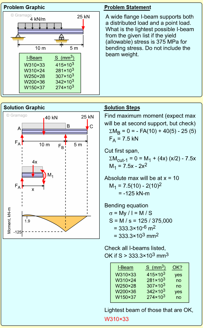 However, now the problem needs to be solved again using the beam weight as an applied load. The new moment at the wall will be,