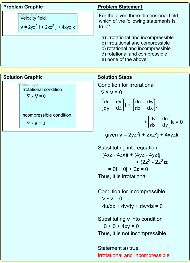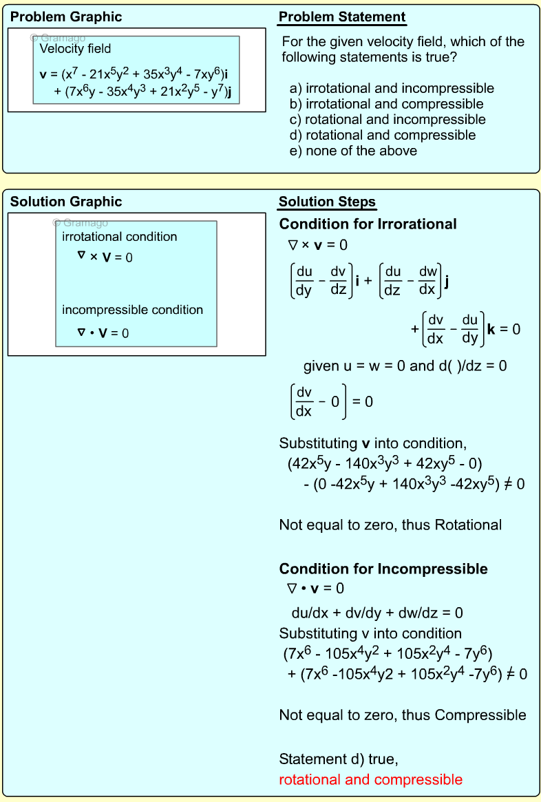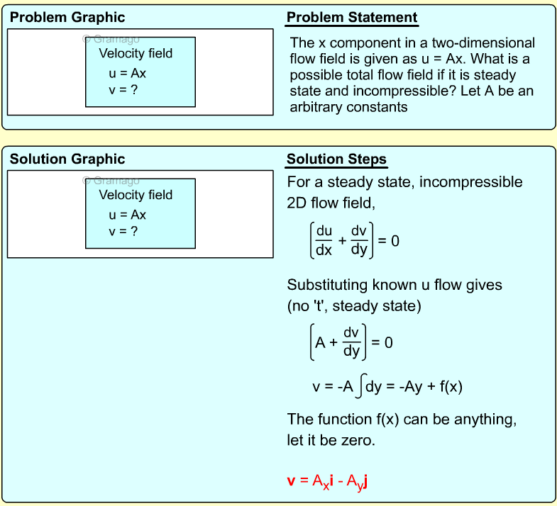 A few assumptions need to be made before the stream function can be determined. First, the flow is assumed to be steady and compressible. Next, the flow is only in the x and y plan (no z-direction flow). Finally, the velocity field needs to satisfy the
