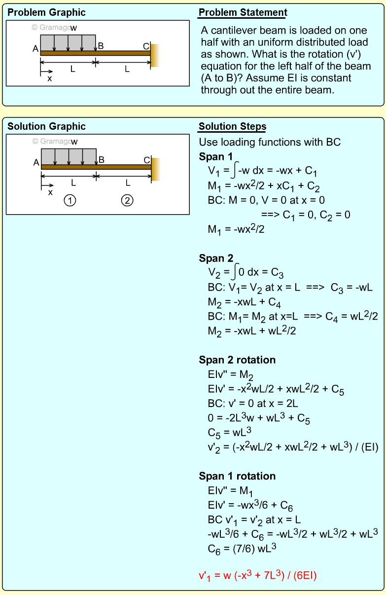 θ(x) = EIv' = -wx3/6 + wLx2/2 - wL3/3