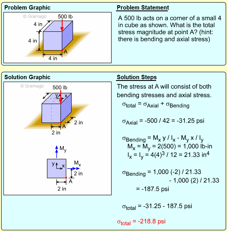 Maximum stress at point A, y = 0.05 m, z = 0.03 m, is