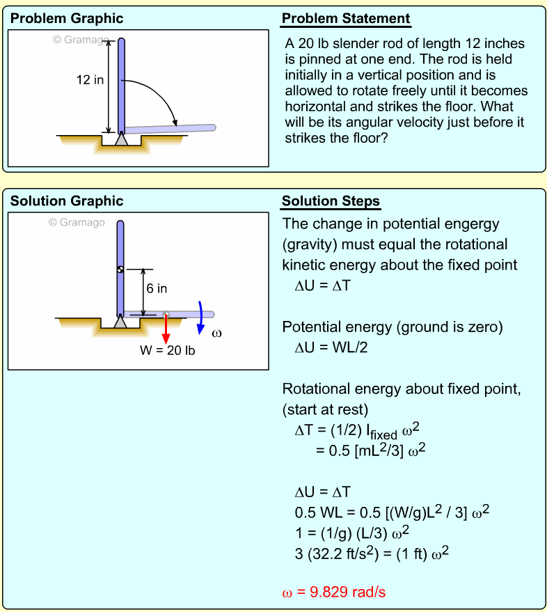 A concentrated mass A of 2 kg is attached to the end of a 3 kg uniform slender rod. The rod is attached to the vertical wall with a spring 15 cm from the bottom pivot point. When the rod is vertical, it has an angular velocity, ω, of 2 rad/s. The undeformed length of the spring is 10 cm. Determine the spring modulus k such that the rod's angular velocity will be zero when it is fall to the horizontal.