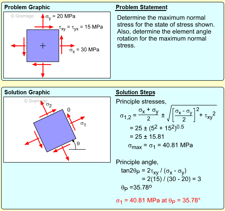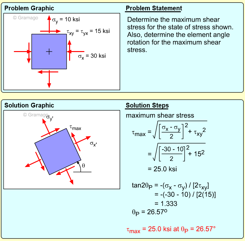 This could be either positive or negative due to the square root. Angle that the max shear stress acts at is,