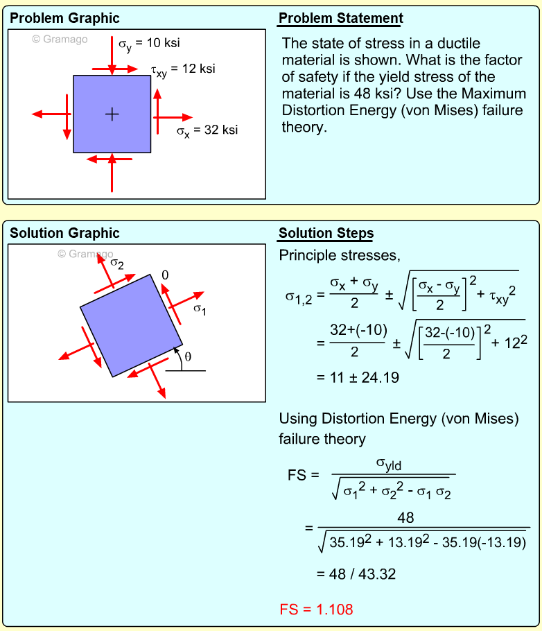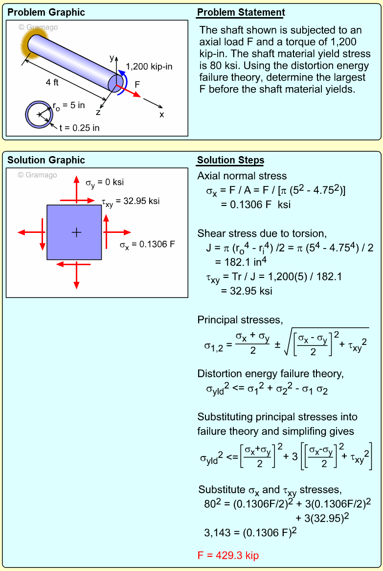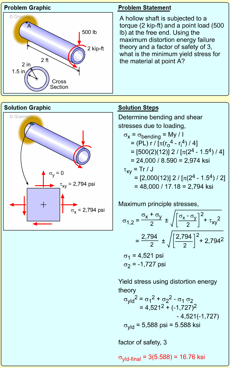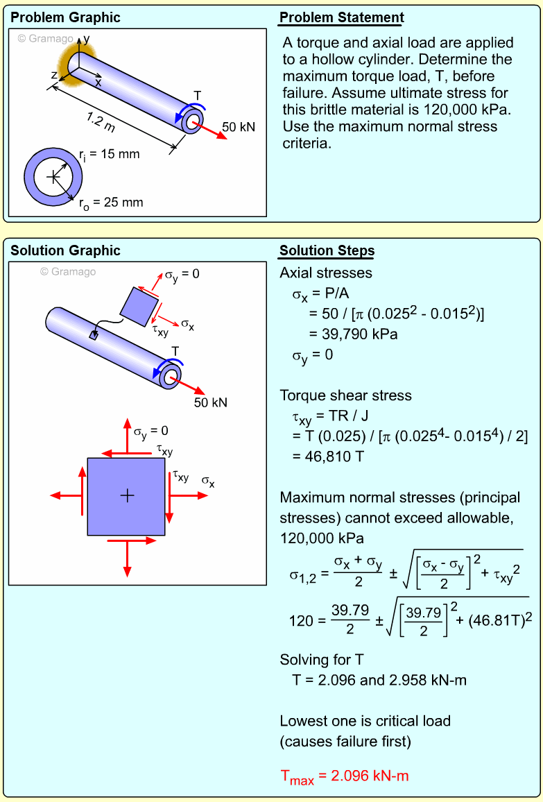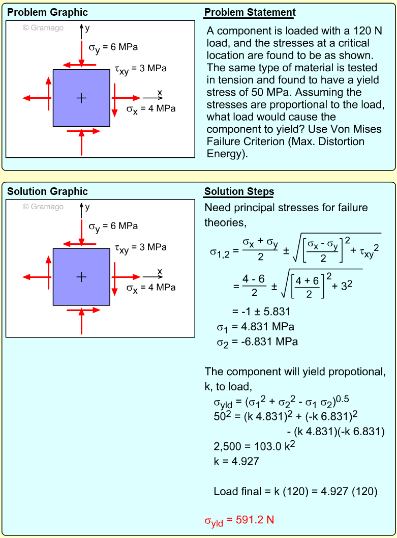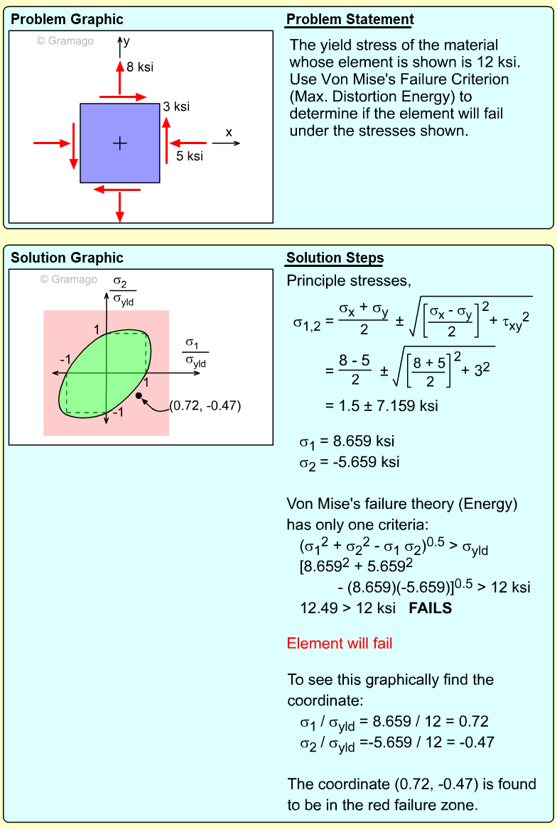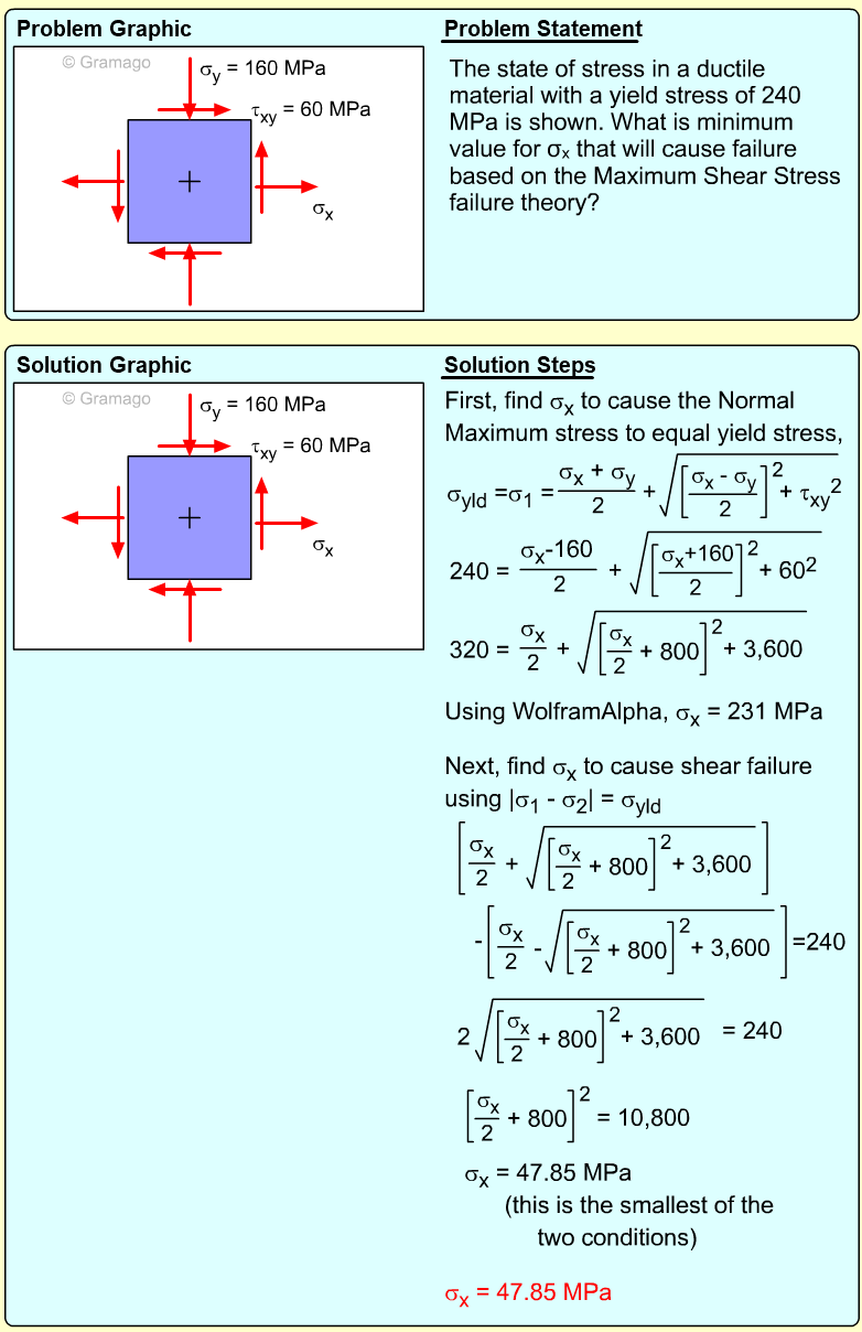In this problem, the maximum allowable shear stress is given, and not the yield stress. However, the yield stress is simply two times the yield stress for a uniaxial test. The three conditions become,