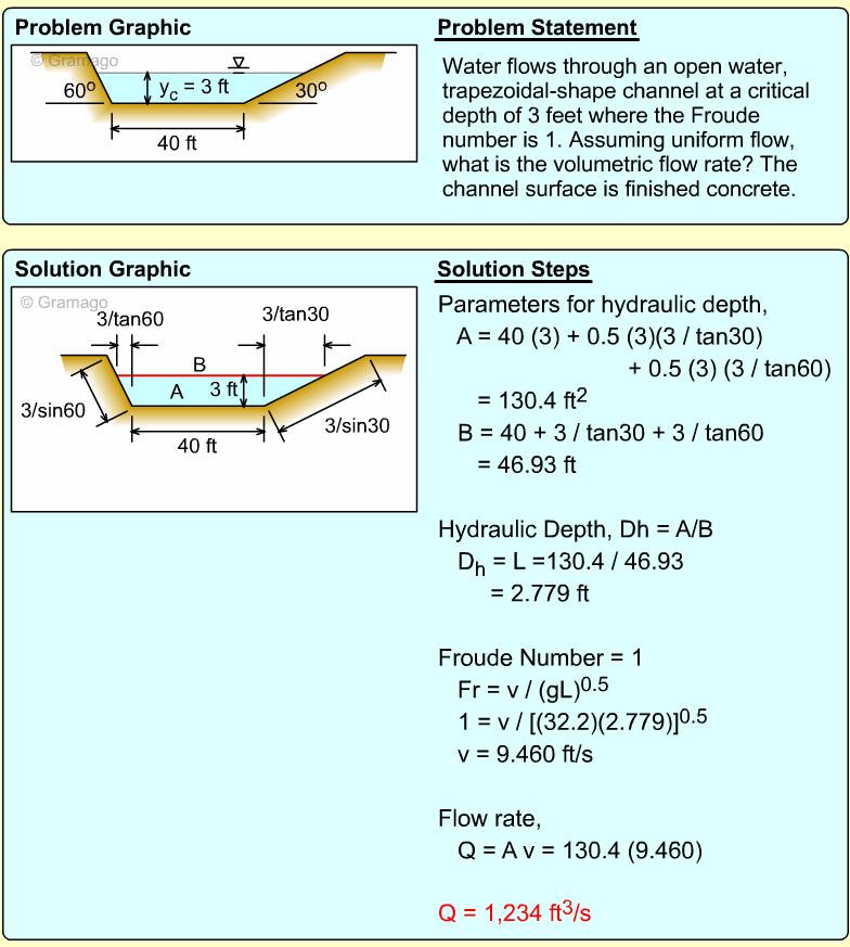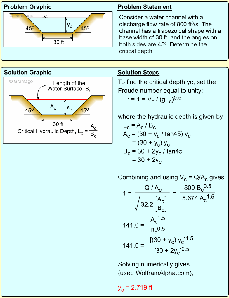 for rectangular or very wide channels, where y is the water depth.