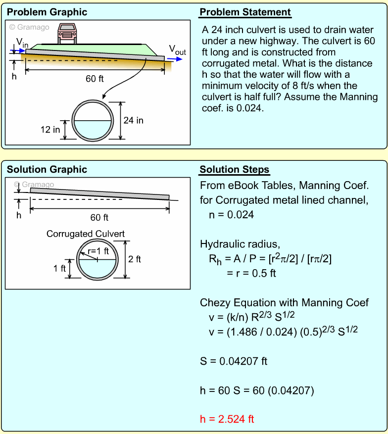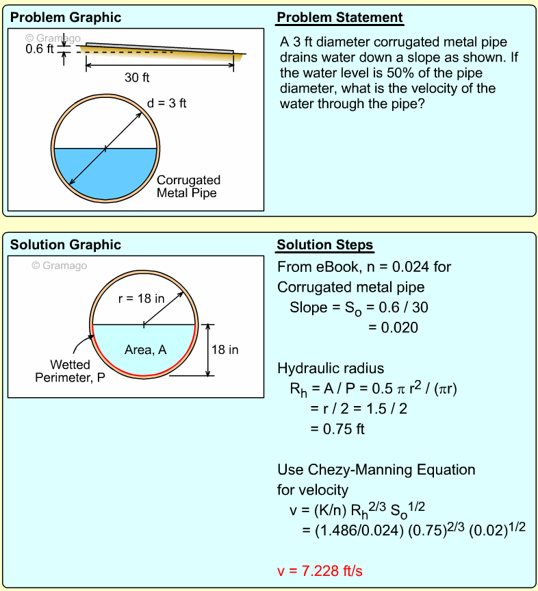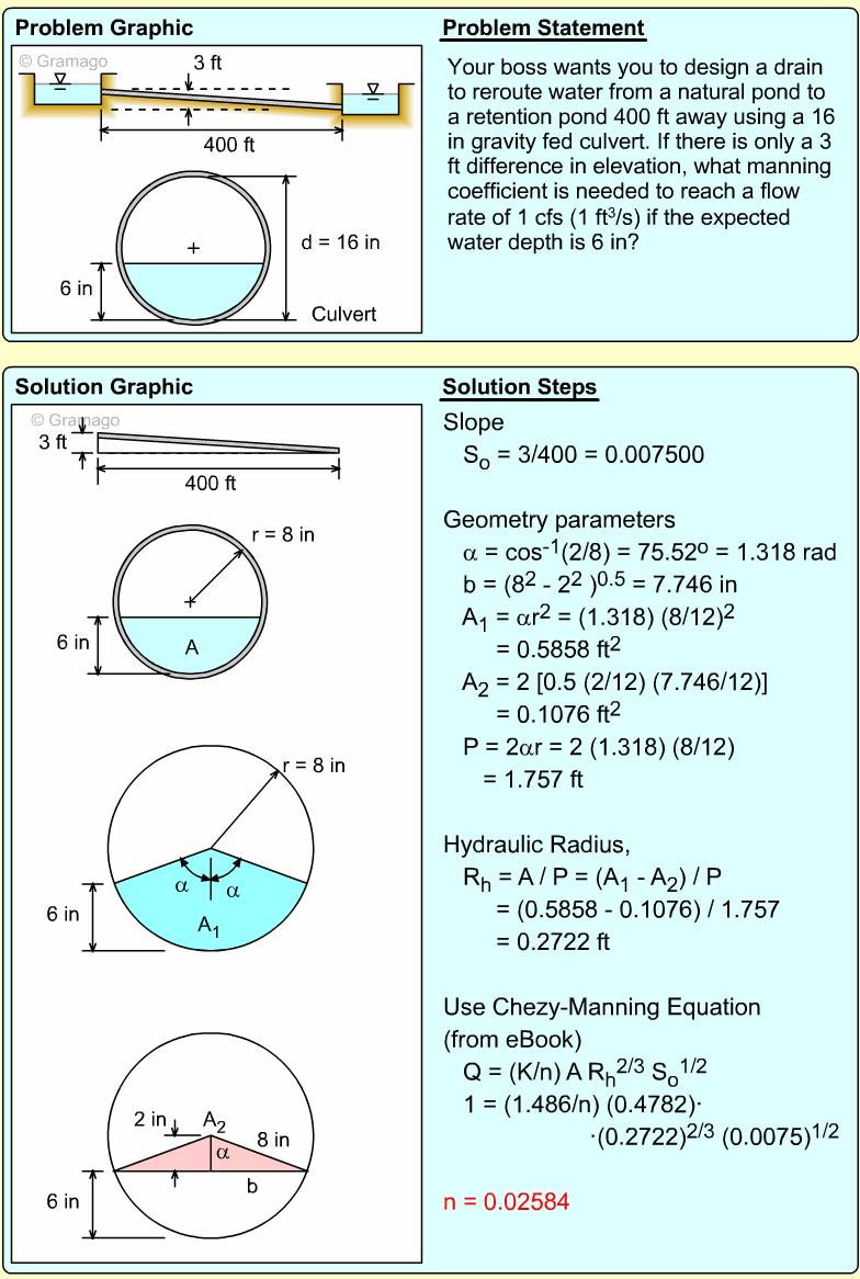 Now, the slope needed to carry this flow can be found from Manning's equation