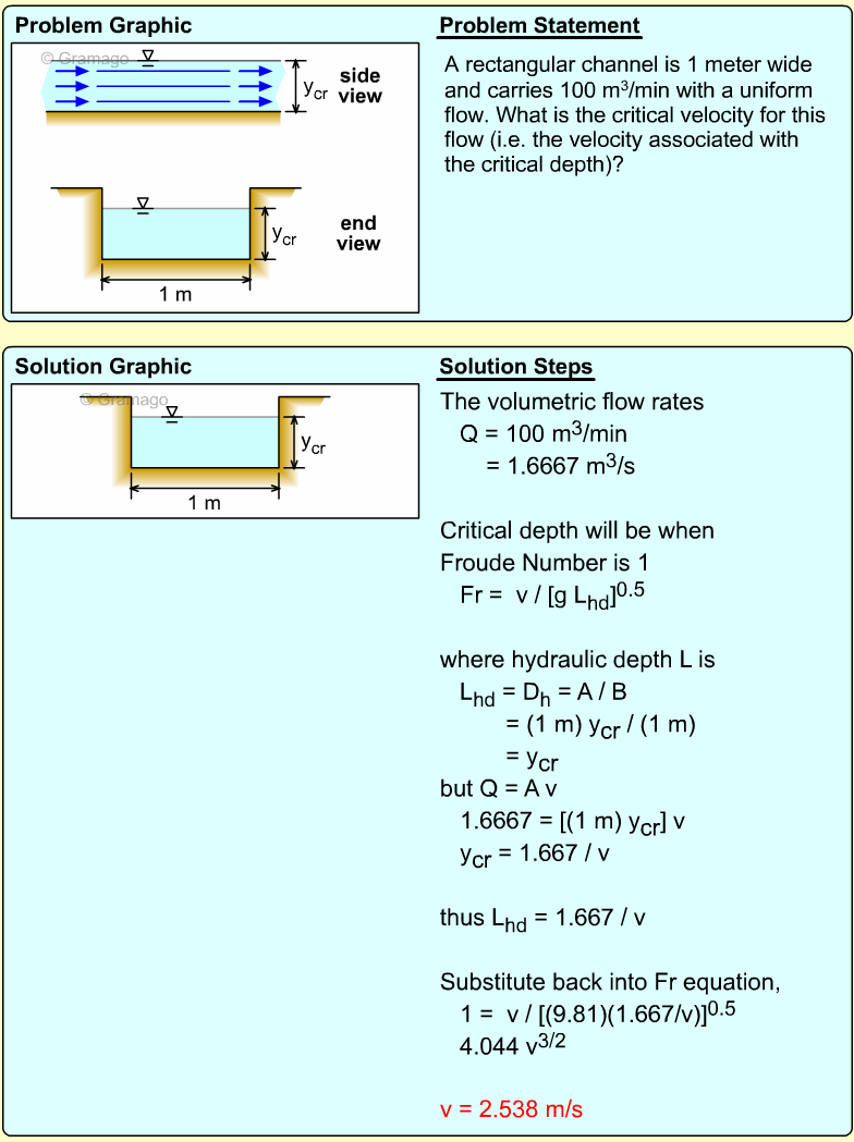 Fr < 1.0: subcritical flow Fr = 1.0: critical flow