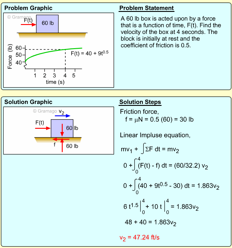 It is important first to note that t he block will not move until the force is large enough to overcome static friction. Thus, the exact time the box first moves needs to be determined.