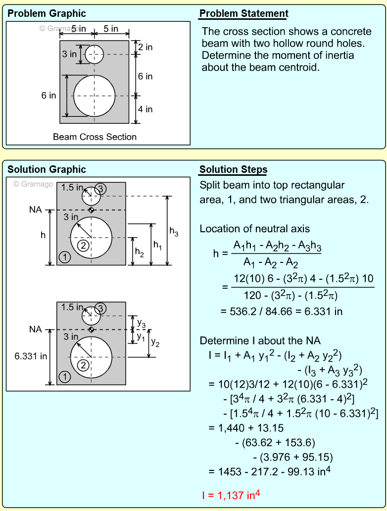 The moment of inertia for both sections are,