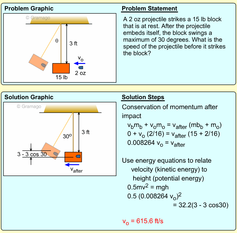 Velocity of box and projectile after impact
