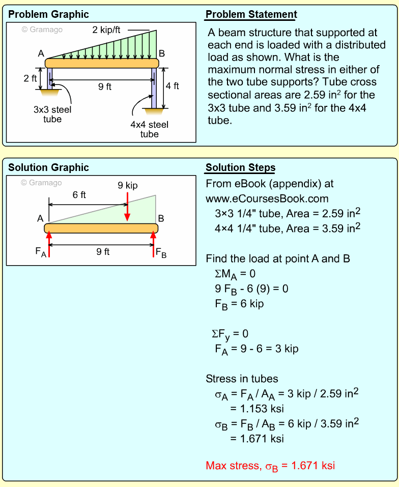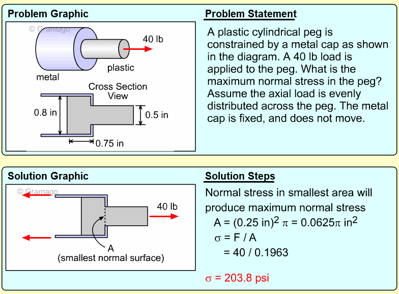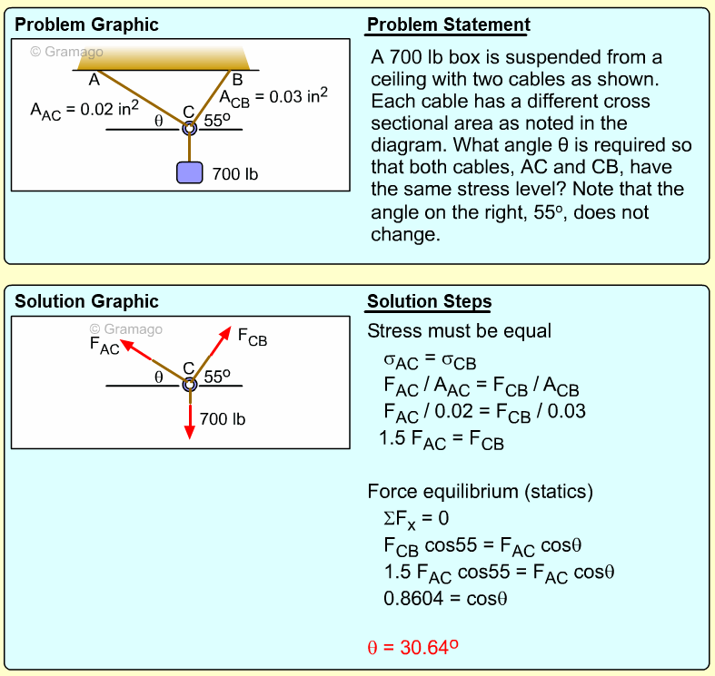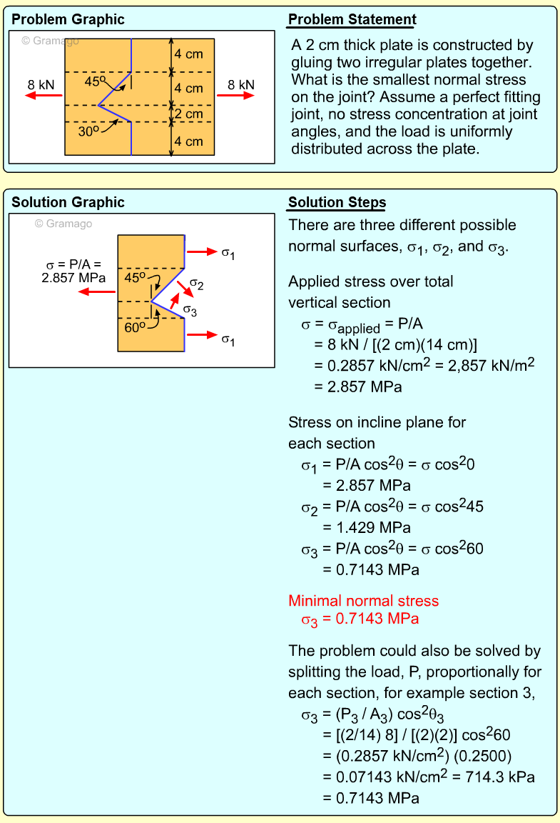 Ignoring the weight of the hanger, the minimum cross sectional area, A, of the vertical part, is