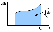 From this equation, and the figure at the left, it can be seen that the area defined by the graph of the acceleration is equal to the change in velocity from to to t.