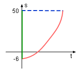 - He starts from 6 feet below sea leavel (s = -6) and finishes 100