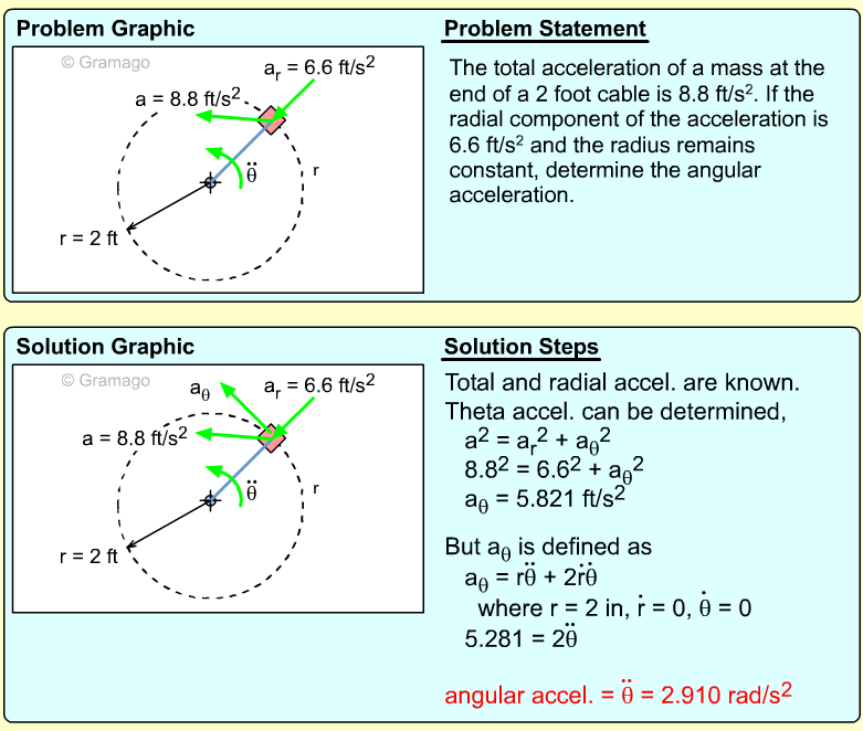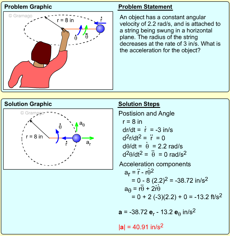 a = (ar2 + aθ2)0.5 = ( -201.12 + 3842)0.5 =