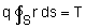 The integral symbol with the circle just means that the integration is around a closed path. Since the shear flow, q, is constant, it simplifies to
