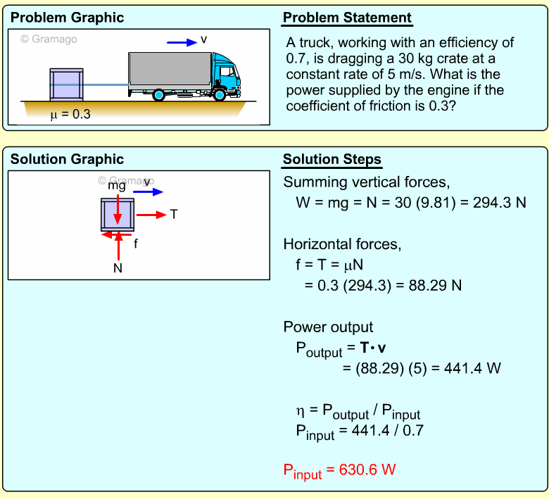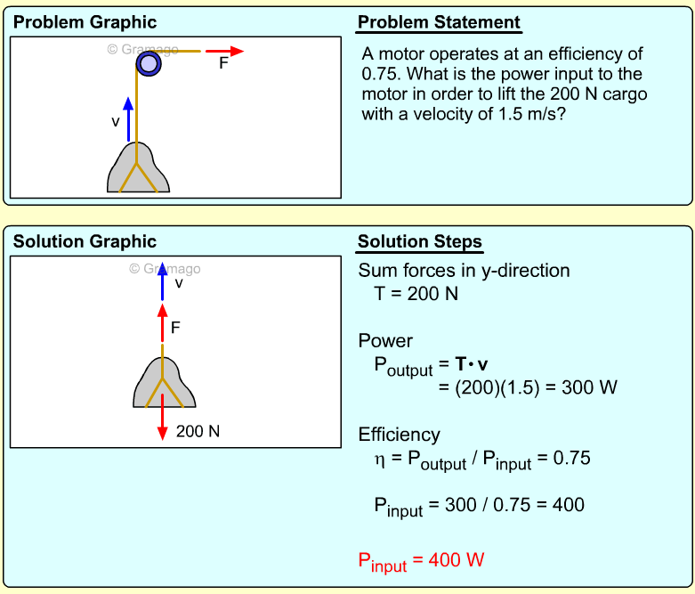 Thus the power output needed from the motor is,