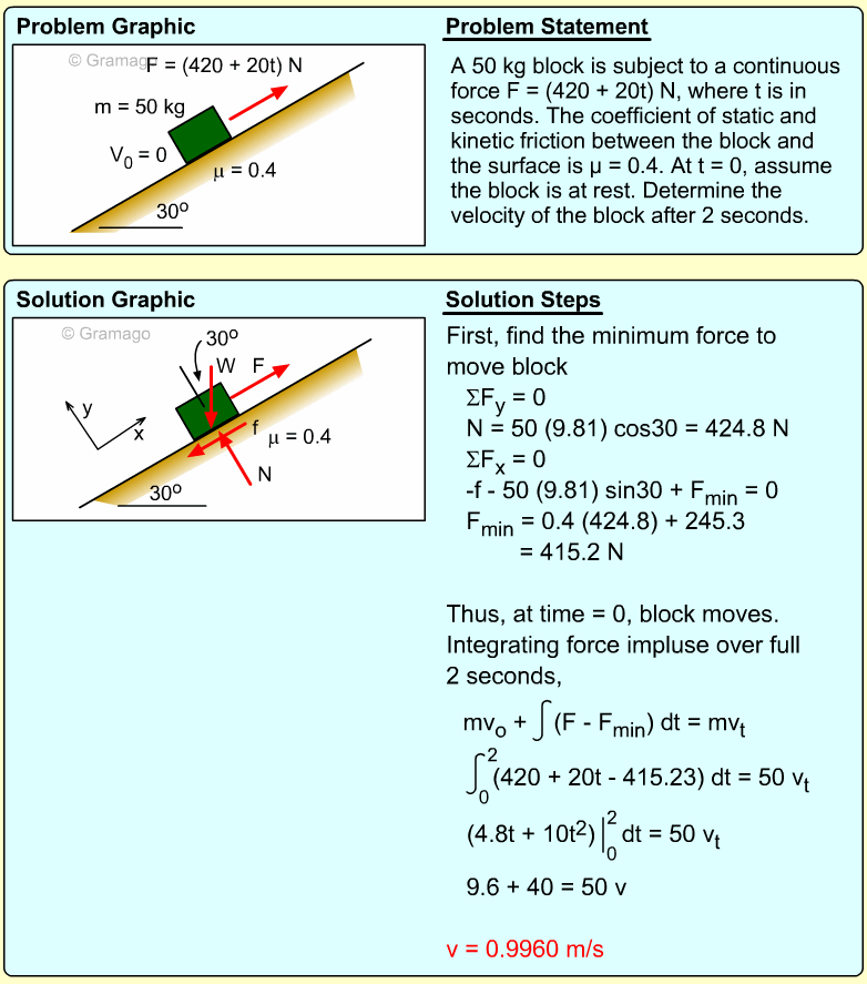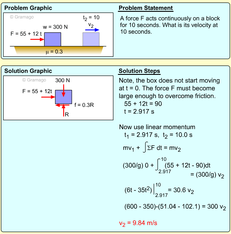 It is important first to note that t he block will not move until the force is large enough to overcome static friction. Thus, the exact time the box first moves needs to be determined.
