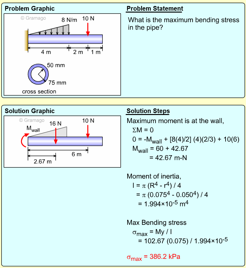 needs to be determined so that the maximum can be identified. The pole can be considered as a simple cantilevered beam
