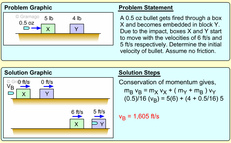 Velocity of box and projectile after impact