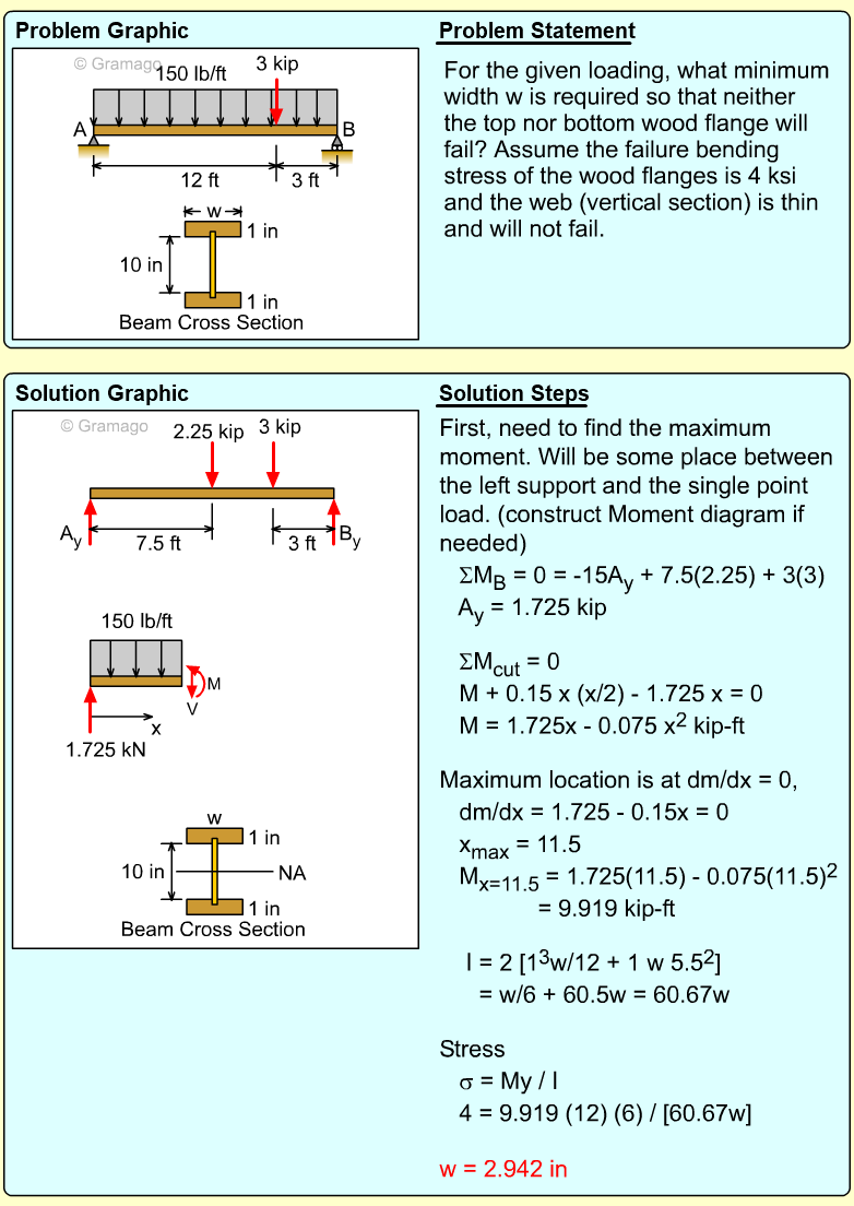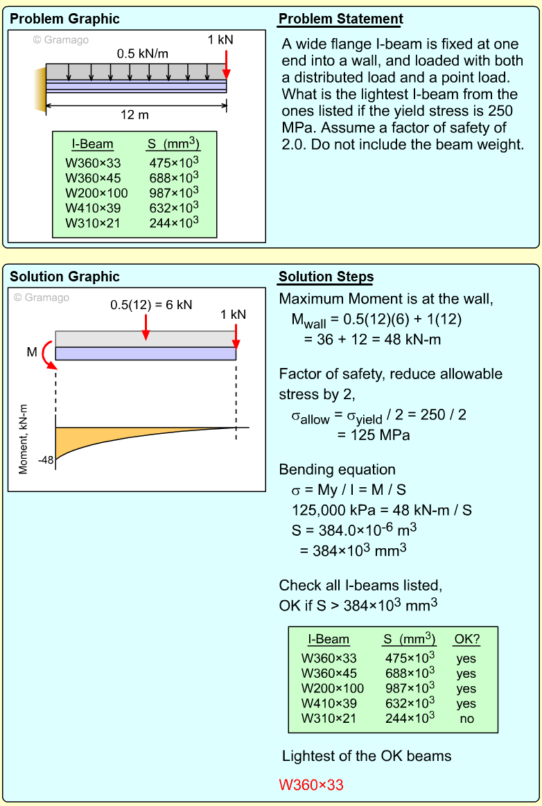 However, now the problem needs to be solved again using the beam weight as an applied load. The new moment at the wall will be,