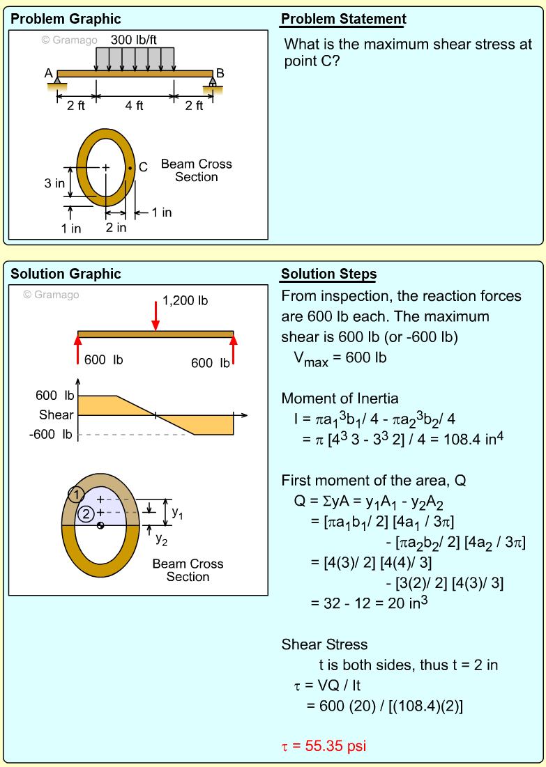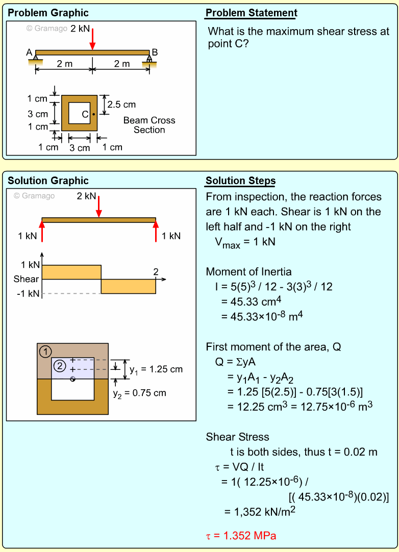All that is missing is Q. Since the maximum shear is needed, the largest Q is required. The largest Q of most symmetrical cross sections occurs at the middle. Thus, determining Q for top half of cross section is