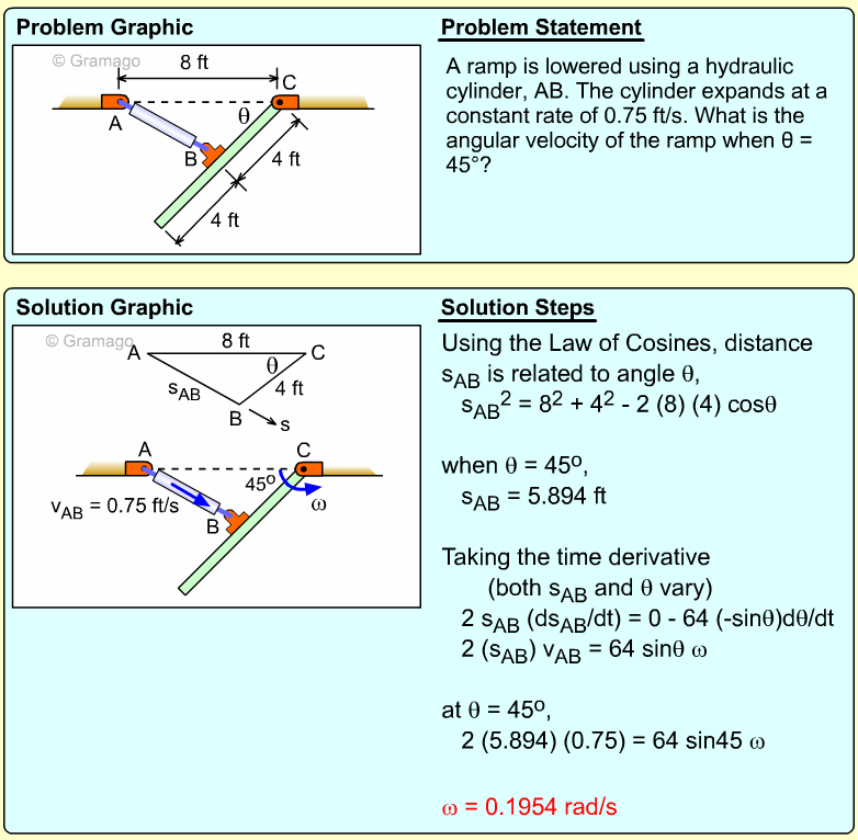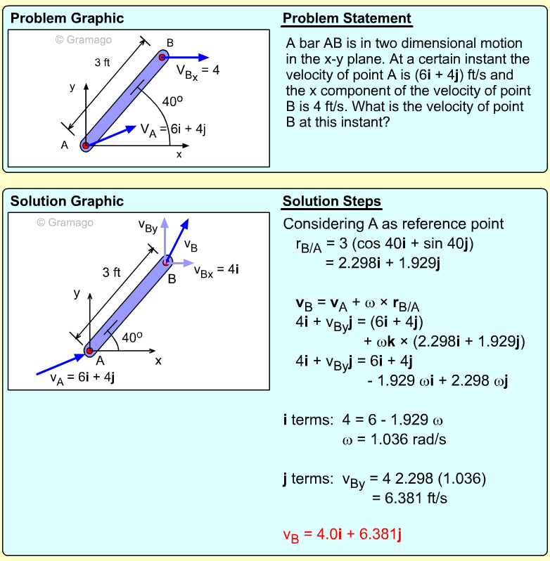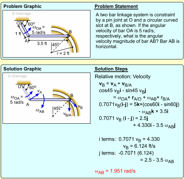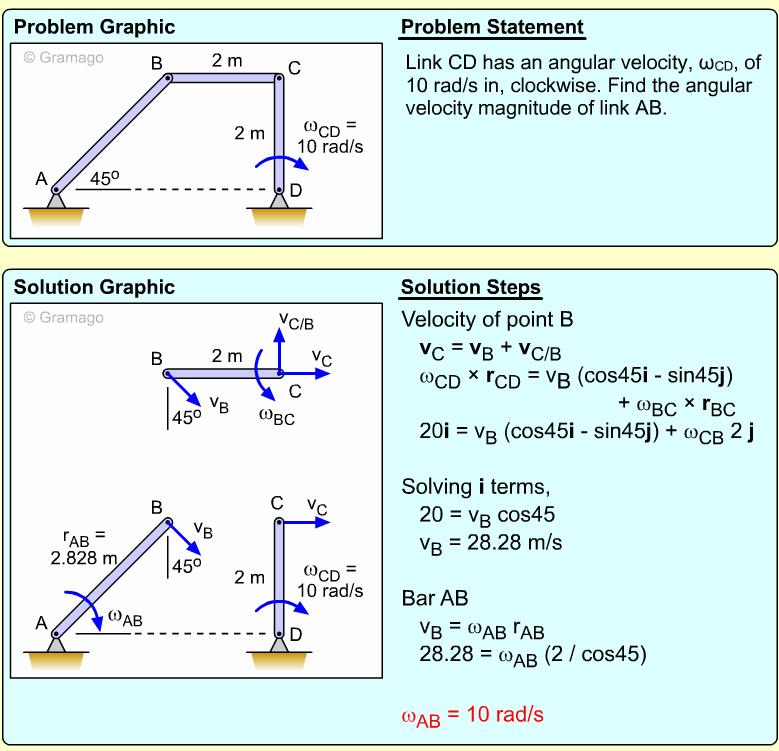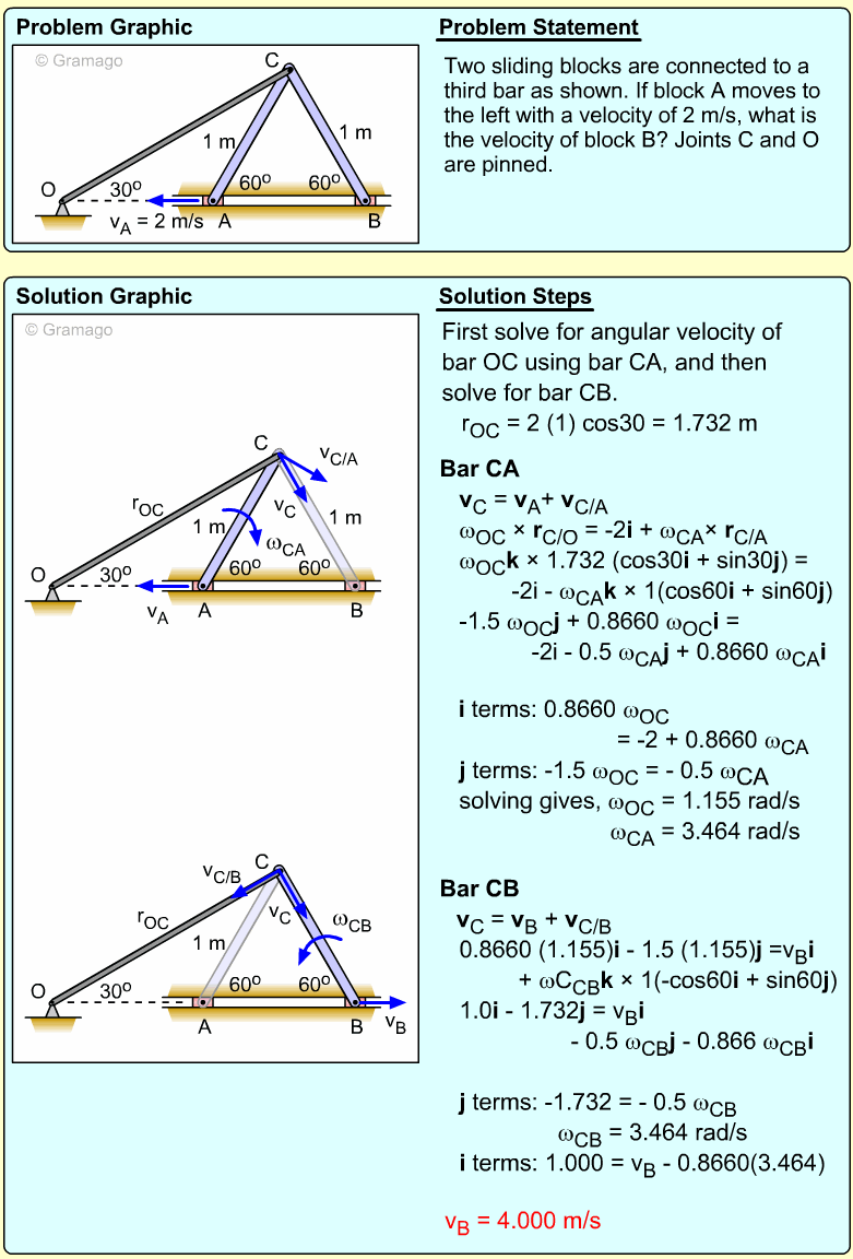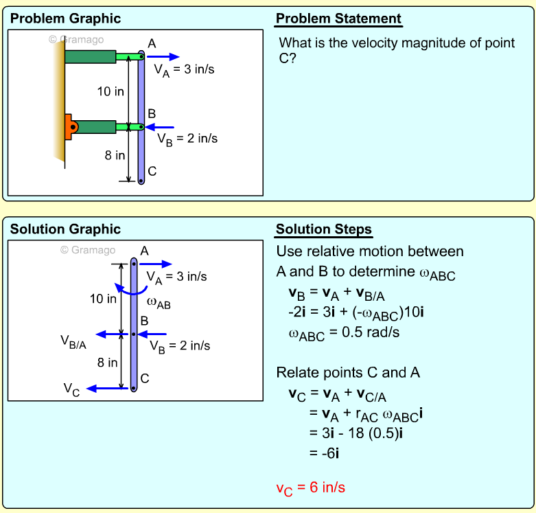 Angular velocity of bar BC is found by relating the velocity of point C to point B,
