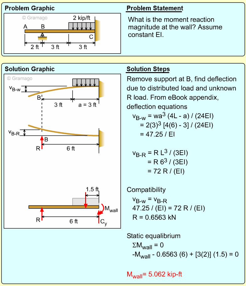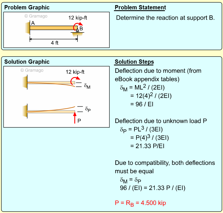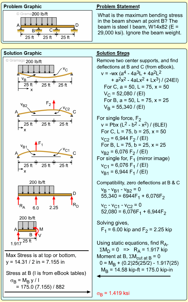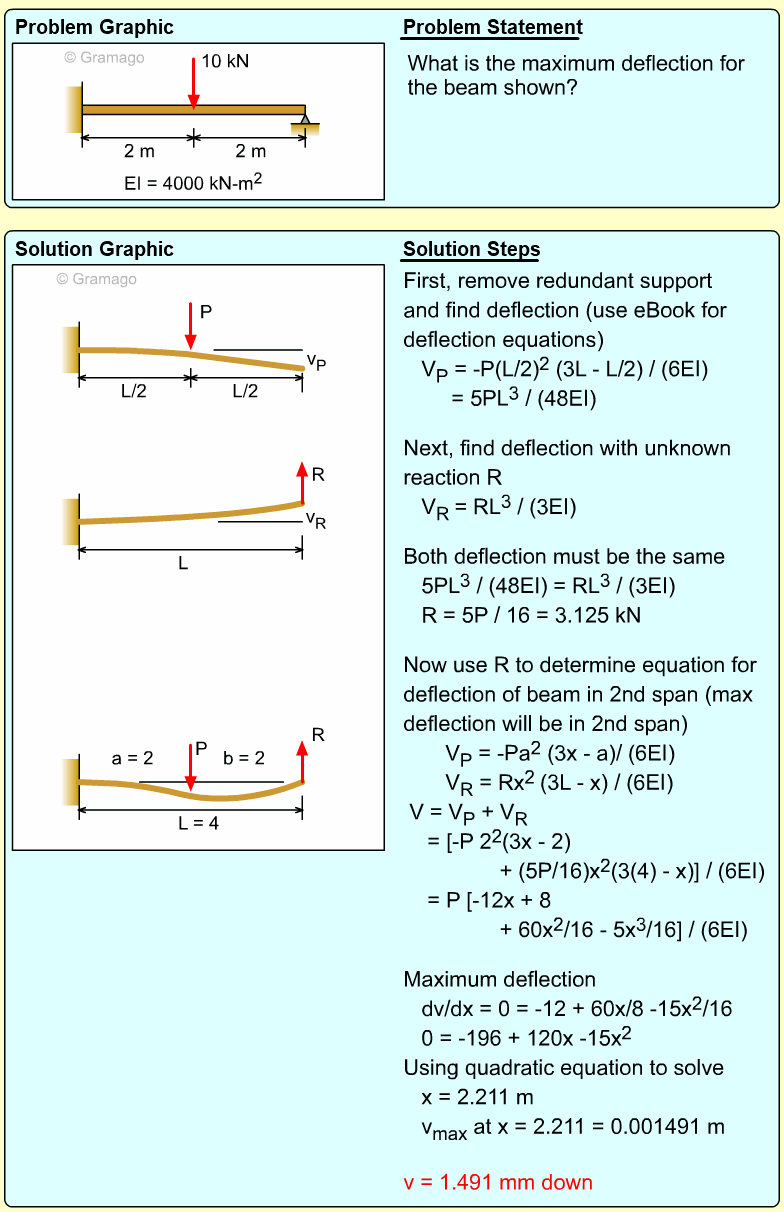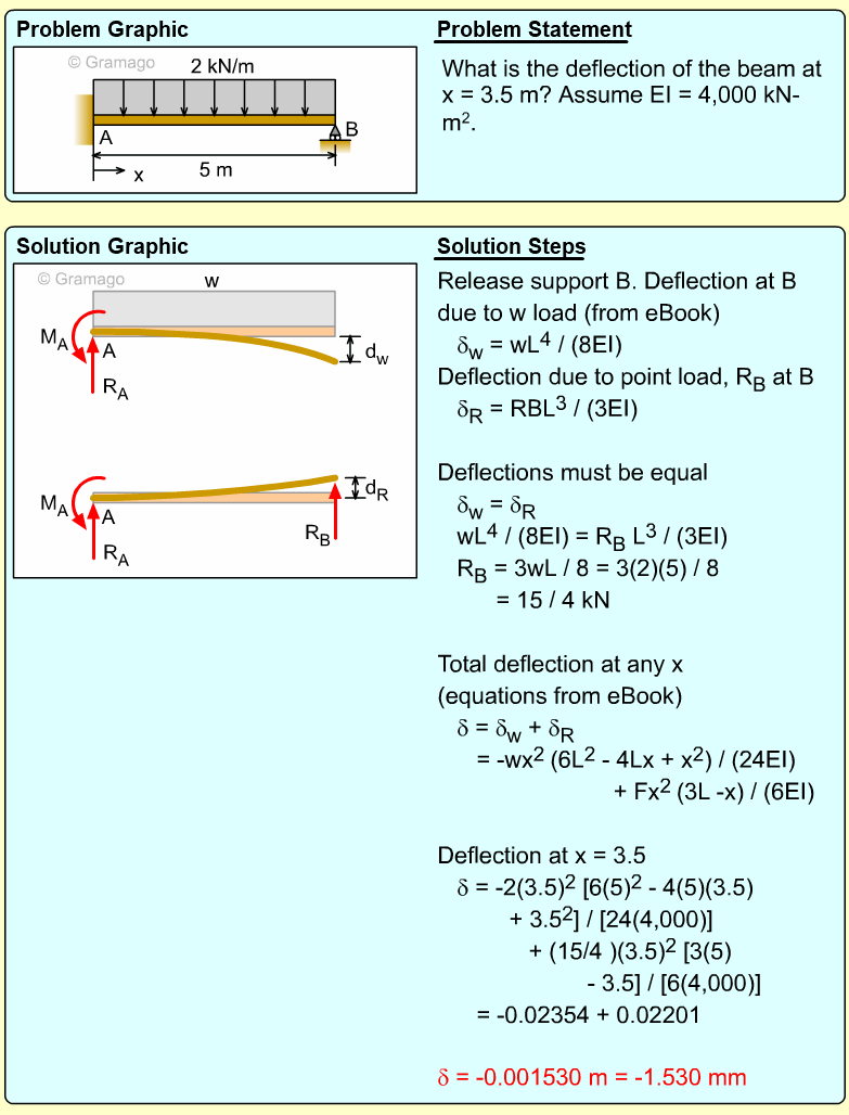 the deflection equation. Young's Modulus is 29,000 ksi and the moment