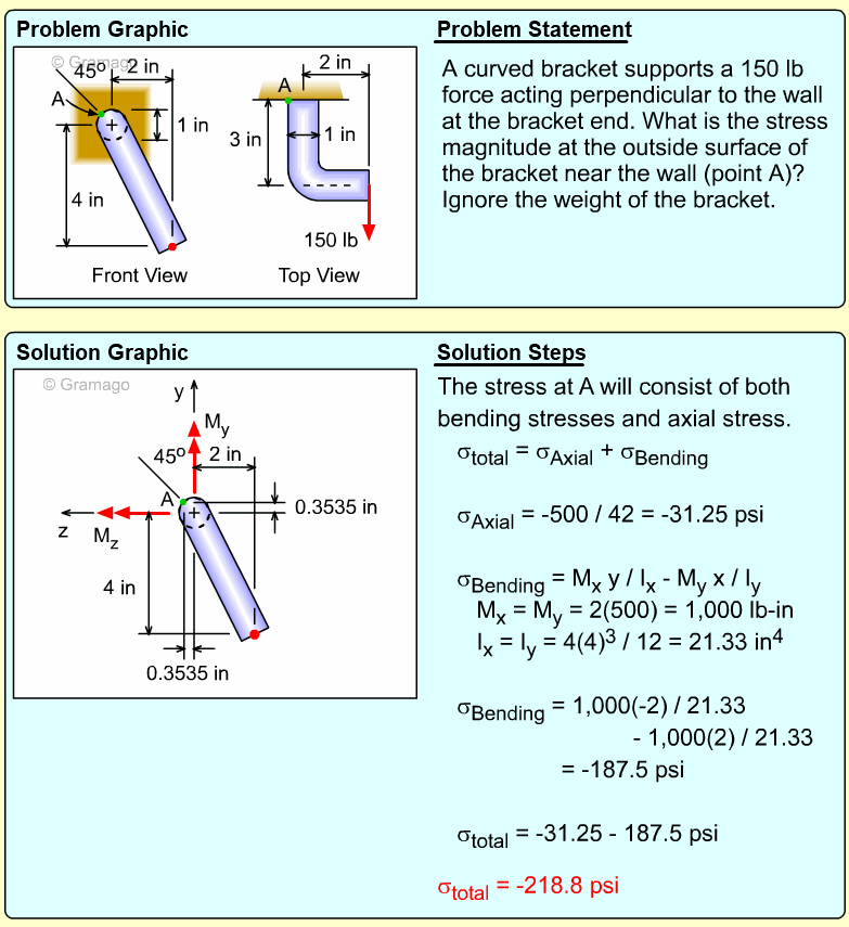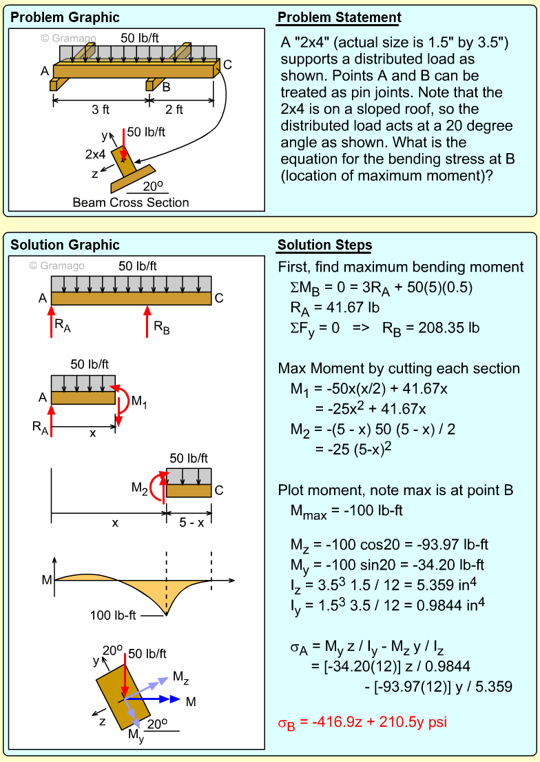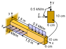 To determine the bending stresses, the maximum moment needs to known. Since this is a cantilevered beam, the maximum bending moment will occur at the fixed end, or the wall.