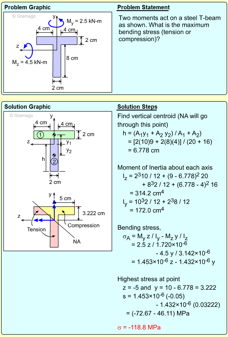 Iz = (0.1)3(0.06)/12 = 5×10-6 m4