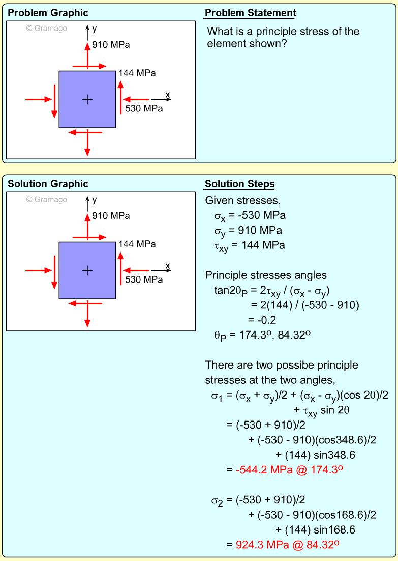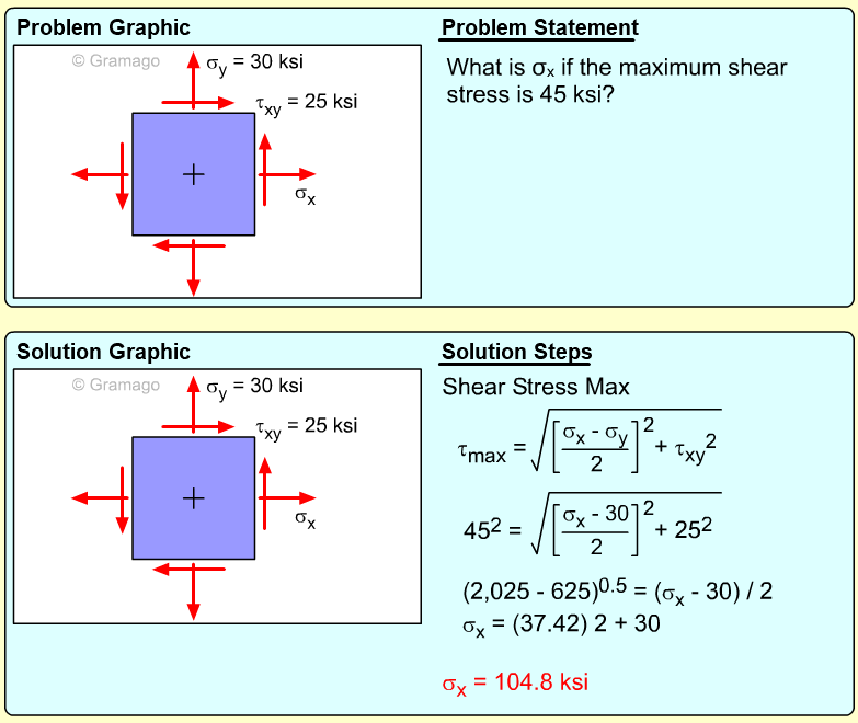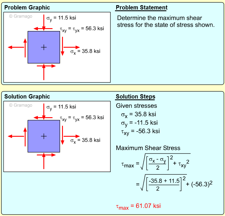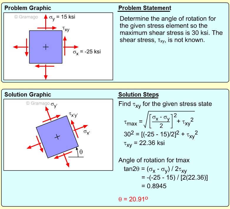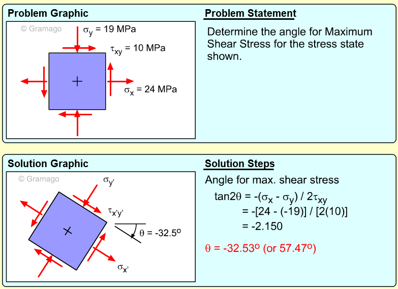 This could be either positive or negative due to the square root. Angle that the max shear stress acts at is,