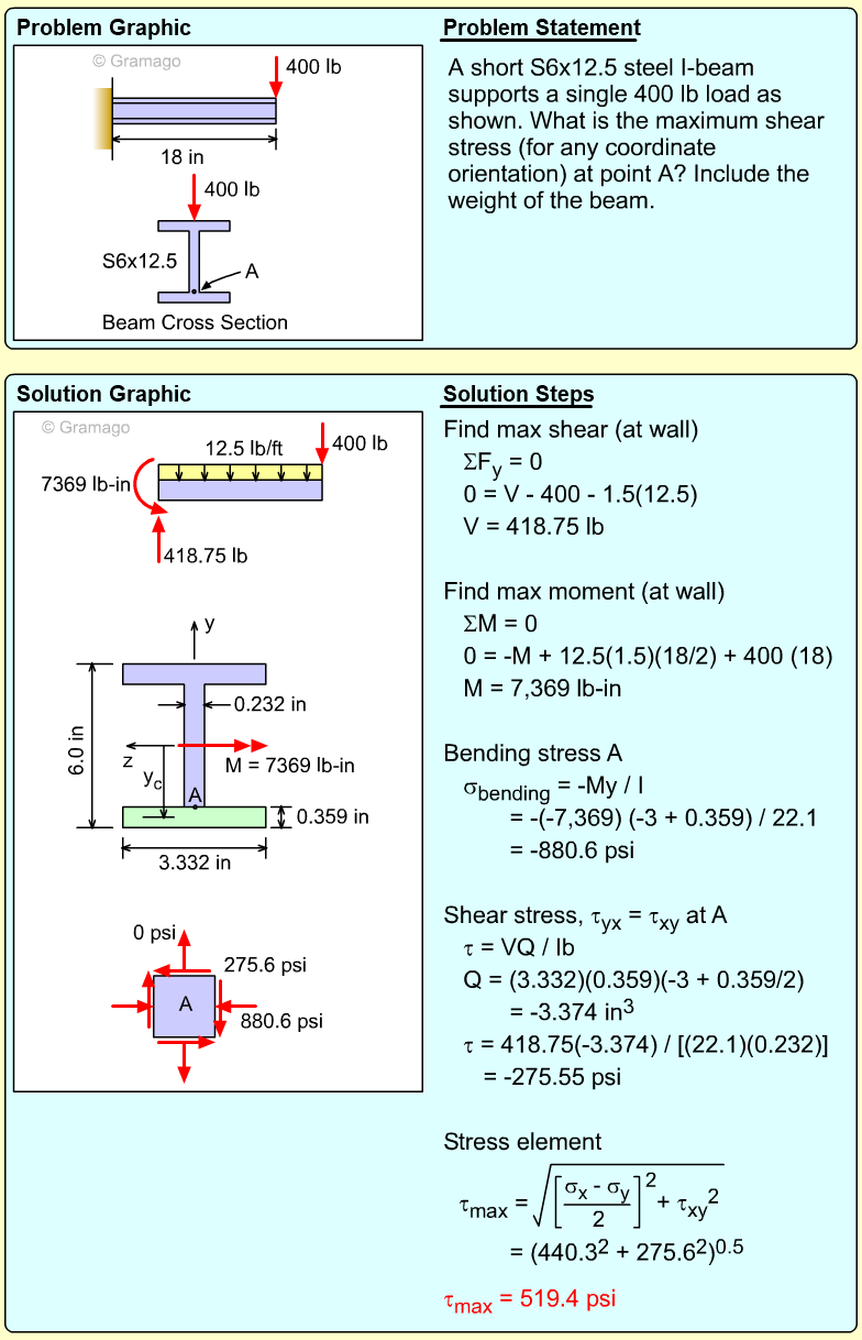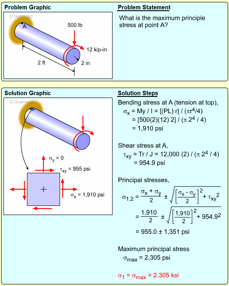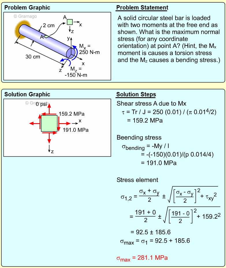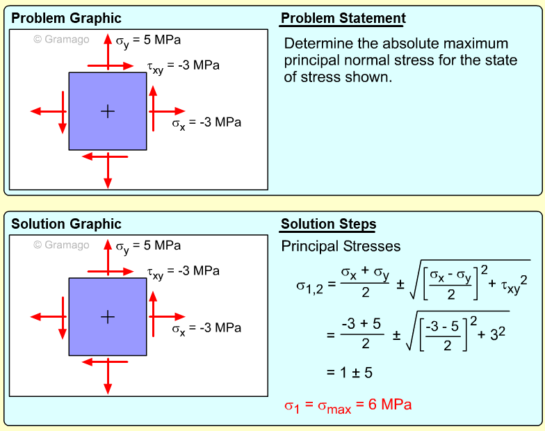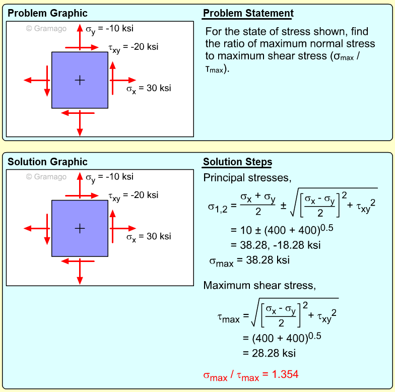 This could be either positive or negative due to the square root. Angle that the max shear stress acts at is,