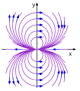 where K is a constand equal to ma/π, and is called the strength of the doublet. The streamlines of a typical doublet are shown in the figure. The corresponding velocity potential is