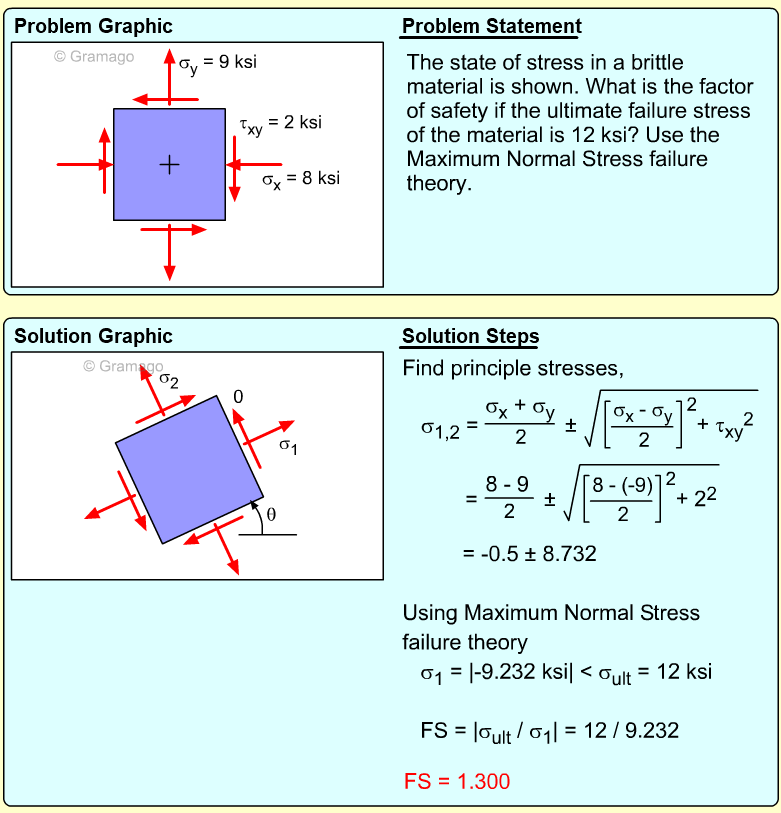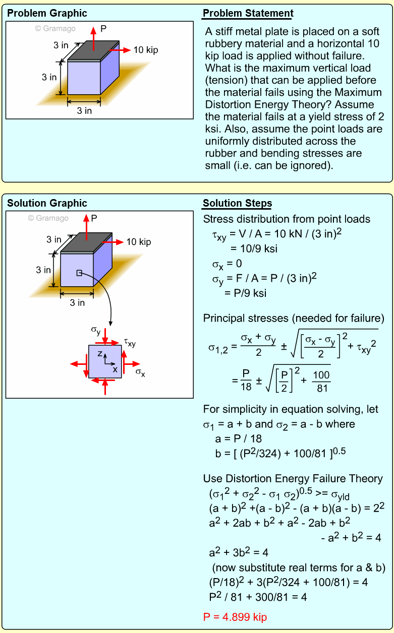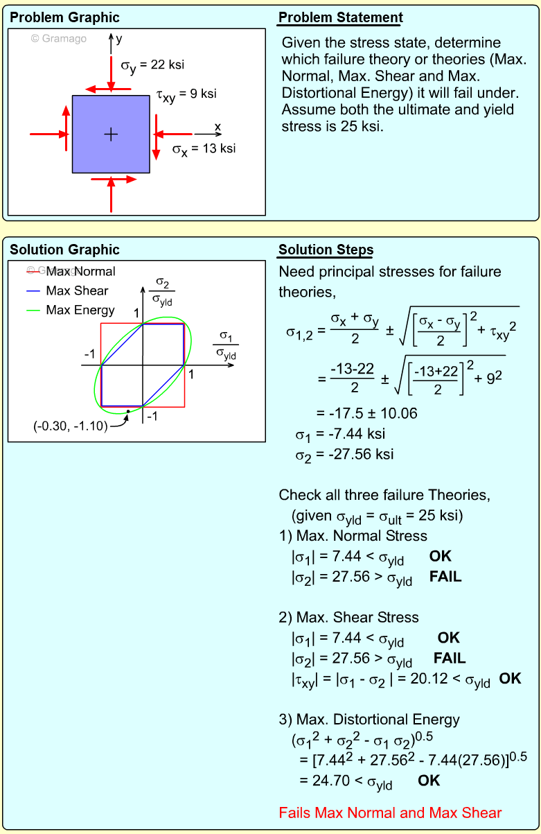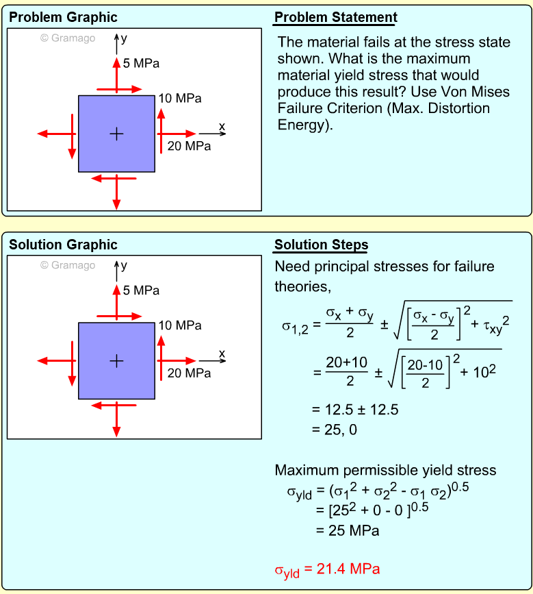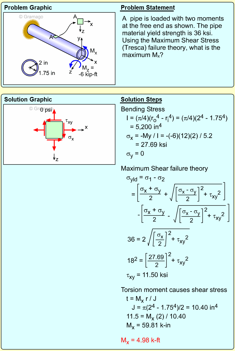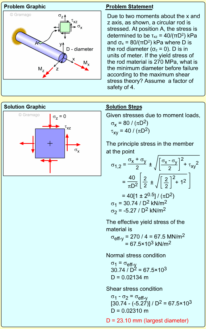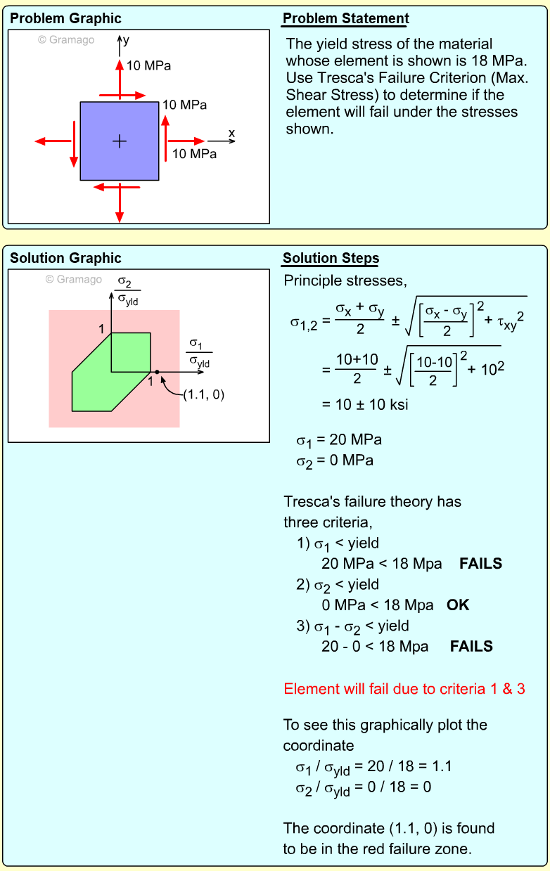 In this problem, the maximum allowable shear stress is given, and not the yield stress. However, the yield stress is simply two times the yield stress for a uniaxial test. The three conditions become,