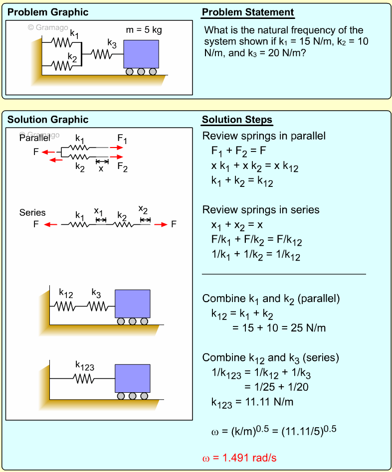 For the current spring configuration, combine k1 and k2 (series) first,
